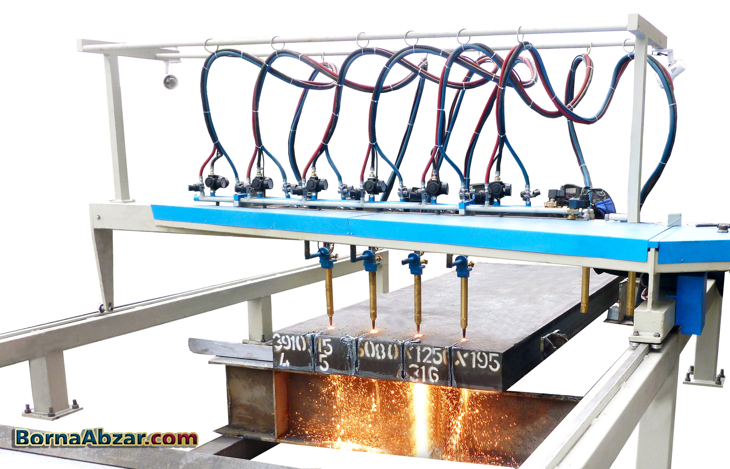 مدل الوند در واقع نوعی راسته بر ویژه است که برای برش ورقهای ضخیم و اسلبها به کار می رود. اسلب ها به جهت وضعیت خاصی که در هنگام تولید دارند ، دارای فشردگی کافی نیستندو معمولا خلل و فرجهایی در لابلای آنها وجود دارد. از طرف دیگر ضخیم بودن ورق اسلب مورد برش که گاها به 25 سانتیمتر می رسد ،برش همزمان آن را بسیار دشوار می کند .بنابراین دستگاه بایستی امکانات ویژه ای برای اینکار داشته باشد. این امکانات ویژه مربوط به سیستم سوخت رسانی ، شیرهای فشار قوی ، تمهیدات لازم برای جلوگیری از آسیب رسیدن قطعات بجهت دمای بسیار زیاد تولید شده در حین تولید و …. خواهد بود .