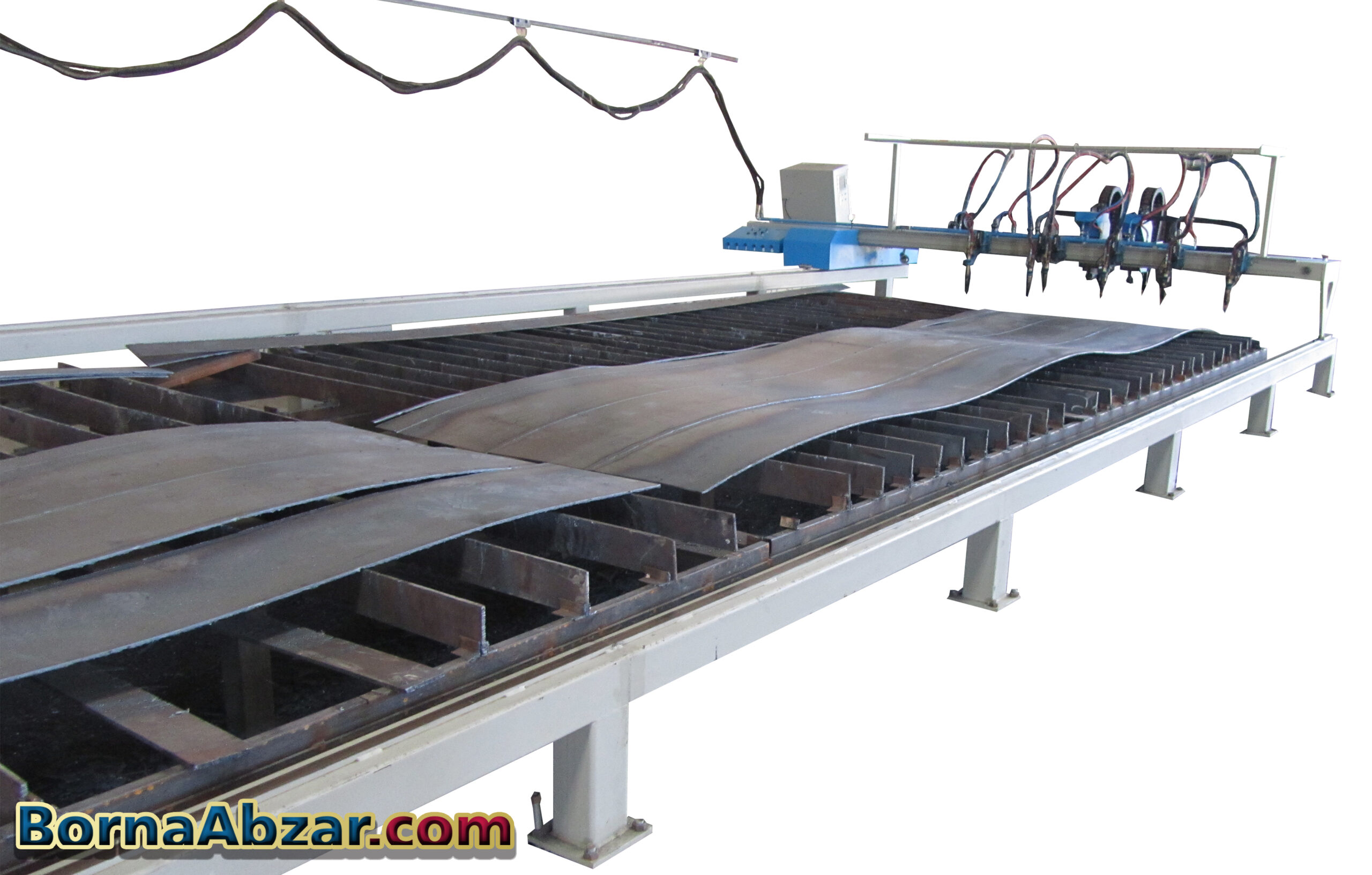 برای برشکاری تسمه های کم عرض از ورق ، همزمانی برش دو طرف تسمه الزامی  است در غیر اینصورت، تسمه برش خورده، منحنی می شود (شمشیری می شود) و عملا برای ساخت سازه غیر قابل استفاده می شود. بنابراین در این نوع دستگاه تمهیدات لازم برای برشکاری موازی تورچها، بطوریکه برش هیچکدام قطع نشود و یا تنظیم شعله در حین عملیات برشکاری بهم نخورد، بسیار حیاتی است.